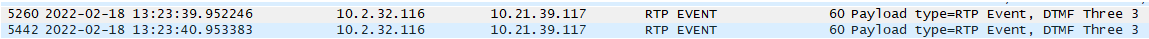 85ea46bd-ec8e-434e-9f55-a869738ef2ad tid:[139758169360128] 2022-02-18 13:25:53.664688 [DEBUG] switch_core_media.c:4777 sofia/external/1022@10.2.32.142 Set 2833 dtmf send payload to 101 recv payload to 101 85ea46bd-ec8e-434e-9f55-a869738ef2ad tid:[139758169360128] 2022-02-18 13:25:53.664688 [DEBUG] switch_core_media.c:7190 sofia/external/1022@10.2.32.142 Set 2833 dtmf send payload to 101 85ea46bd-ec8e-434e-9f55-a869738ef2ad tid:[139758169360128] 2022-02-18 13:25:53.664688 [DEBUG] switch_core_media.c:7197 sofia/external/1022@10.2.32.142 Set 2833 dtmf receive payload to 101 85ea46bd-ec8e-434e-9f55-a869738ef2ad tid:[139758169360128] 2022-02-18 13:25:53.664688 [DEBUG] switch_core_media.c:7220 sofia/external/1022@10.2.32.142 Set rtp dtmf delay to 40 85ea46bd-ec8e-434e-9f55-a869738ef2ad tid:[139758169360128] 2022-02-18 13:25:56.004688 [DEBUG] switch_rtp.c:7738 RTP RECV DTMF 4:1440 85ea46bd-ec8e-434e-9f55-a869738ef2ad tid:[139758169360128] 2022-02-18 13:25:56.004688 [INFO] switch_channel.c:515 RECV DTMF 4:1440
