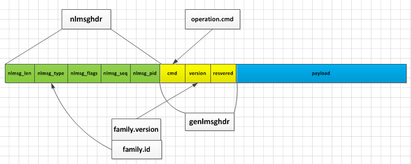 1 struct genlmsghdr { 2 __u8 cmd; 3 __u8 version; 4 __u16 reserved; 5 };