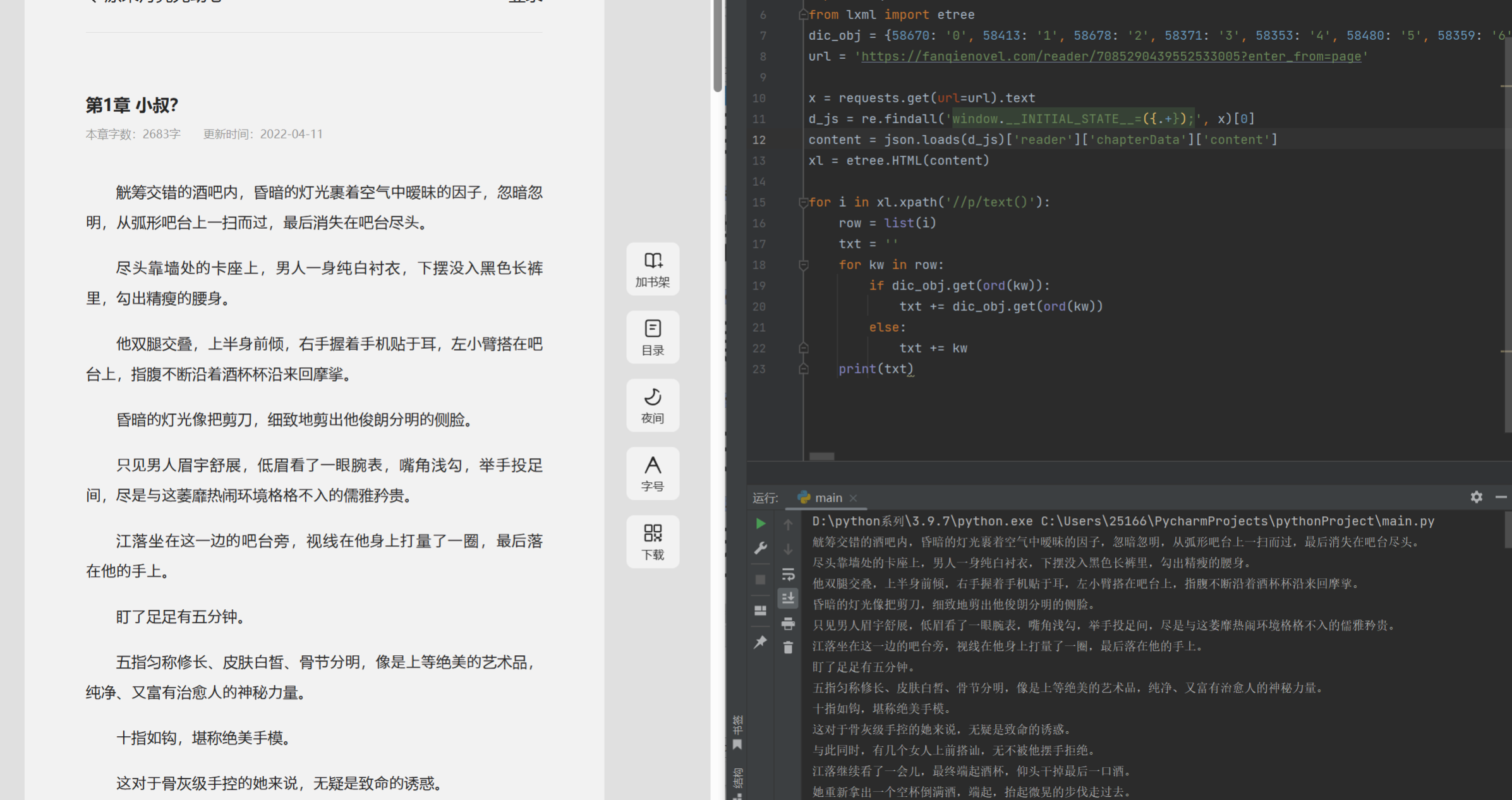 import json from fontTools.ttLib import TTFont import re from lxml import etree with open('t.xml', 'r', encoding='utf-8') as fp: x = fp.read().encode('utf-8') xl = etree.HTML(x) k = {} for i in xl.xpath('//cmap/*/map'): k[int(i.xpath('./@code')[0], 16)] = i.xpath('./@name')[0] def check_word(kw): pass with open('1.html', 'r', encoding='utf-8') as fp: x = fp.read() d_js = re.findall('window.__INITIAL_STATE__=({.+});', x)[0] content = json.loads(d_js)['reader']['chapterData']['content'] xl = etree.HTML(content) for i in xl.xpath('//p/text()'): row = list(i) txt = '' for kw in row: if k.get(ord(kw)): txt += k.get(ord(kw)) else: txt += kw print(txt,row)