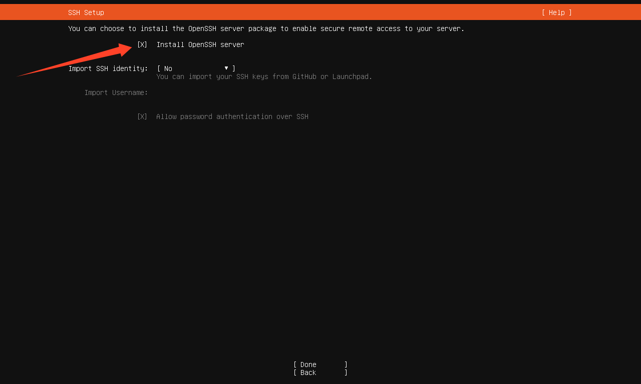 19.SSH设置,这里要按空格键选择安装OpenSSH server