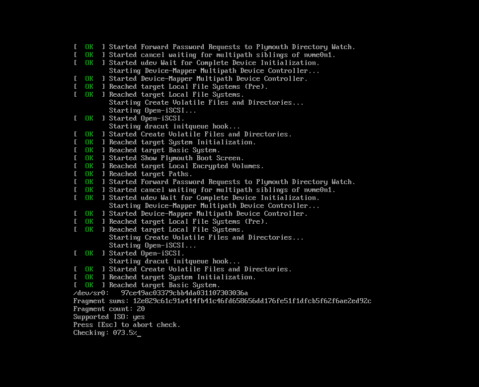 8.开启该虚拟机,进入安装阶段,安装时选择第一项,检测并安装选项