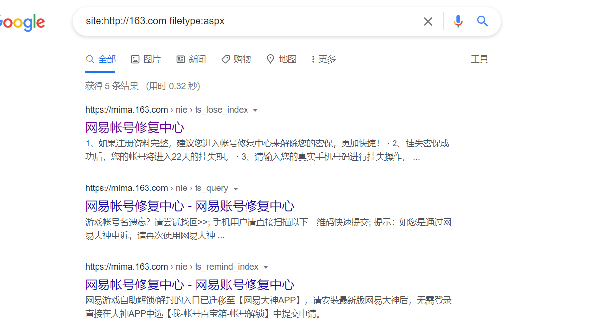 filetype:指定访问的文件类型,例如:site:http://baidu.com filetype:pdf 将只返回http://baidu.com站点上文件类型为pdf的网页