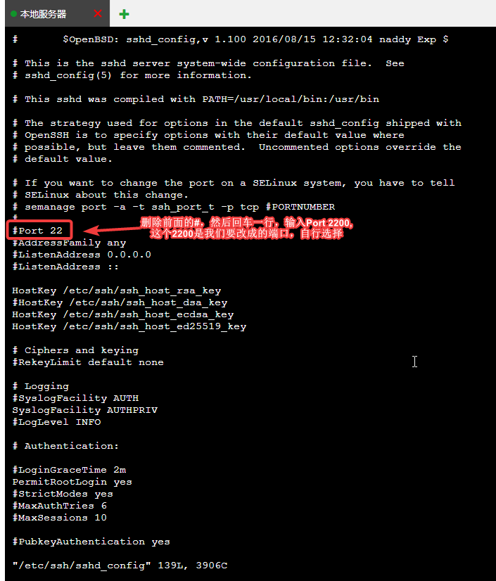 这里以把22端口更改为2200端口举例,如需要更改其他端口,自行把2200换成其他数字