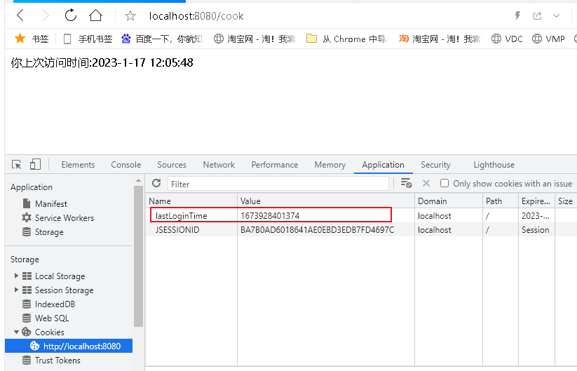 Cookie cookie=new Cookie("lastLoginTime",System.currentTimeMillis()+"");