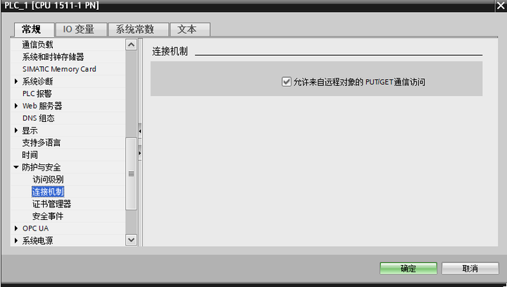 1.对PLC属性进行设置,勾选“允许来自远程对象的PUT/GET通信访问”即可;