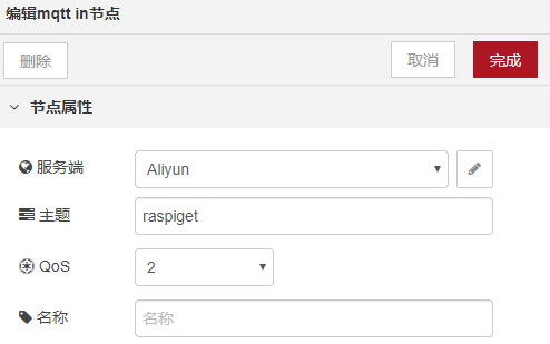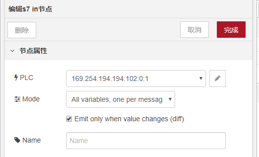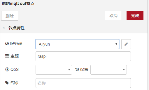 到此,S7的节点设置完成,下面对MQTT in和MQTT out节点进行设置,如下图所示;