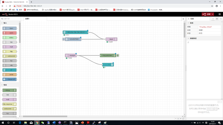 到此,Node-Red的设置基本完成,接下来进行简单编程,Node-Red编程方式的优缺点此处便不加赘述,如果对Node-Red编程方式不太了解的,可以参考链接(