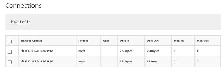 最后,我们可以在MQTT服务器中查看具体的发布订阅数量,数据量的大小以及连接数;