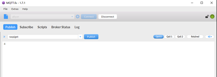 然后通过MQTT.fx客户端发布“raspiget”主题,从而修改PLC内部的数据;