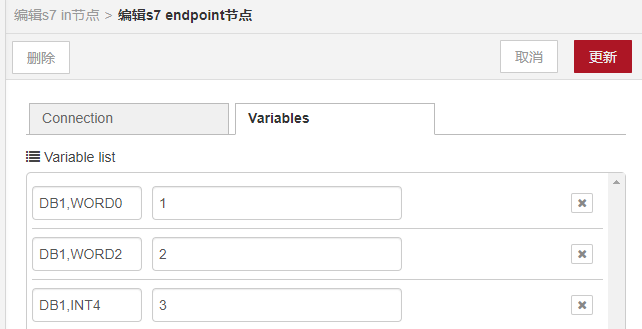 下面是要访问的变量的填写,与TIA Portal中的设置对应;