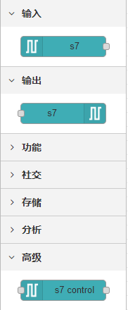 本次会用到的节点有S7 in;S7 out;MQTT in;MQTT out;