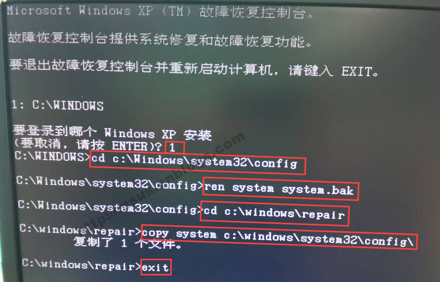 先去到c:\windows\system32\config对system进行ren备份原有损坏system文件 ren system system.bak