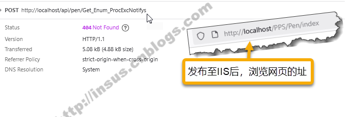 上面2张图中的POST地址,VS中,Javascript呼叫Web API的路径与发布到IIS后,一个正确,后者不正确,缺少了IIS站点设置的虚拟目录(应用程序名)。