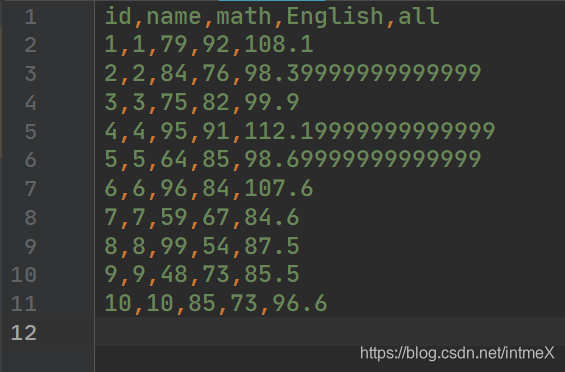 十组数据存放于11.csv中,csv文件的x为“math”列,y为“English”列,z为“all”列,按照