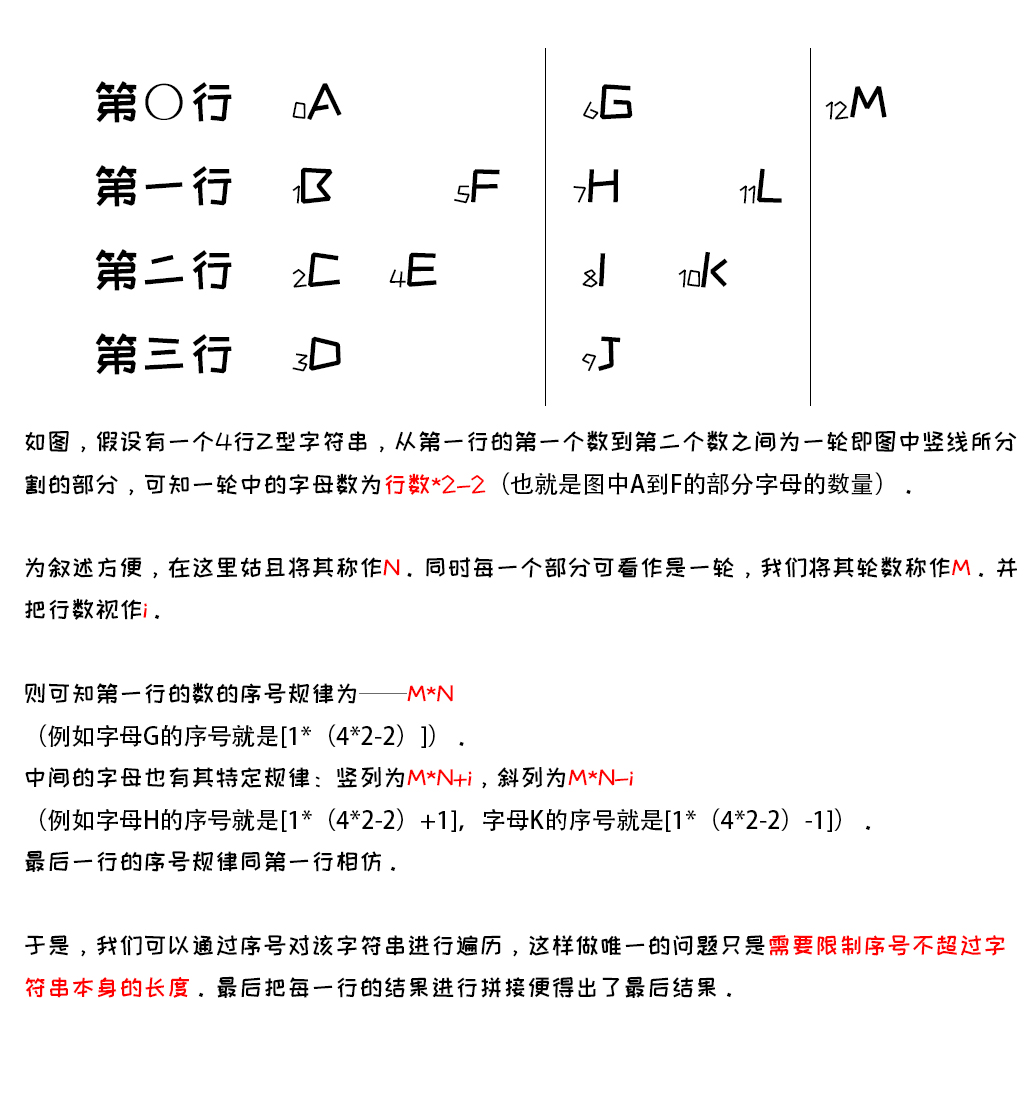 int internal=numRows+numRows-2;(internal为一轮中的字母数,nal为轮数)