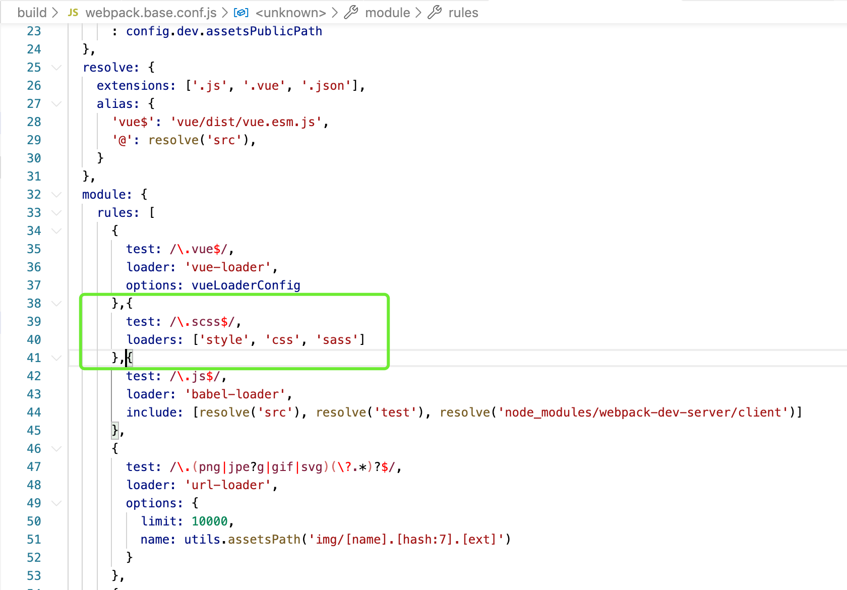 然后在build文件夹下的webpack.base.conf.js的rules里面添加配置:
