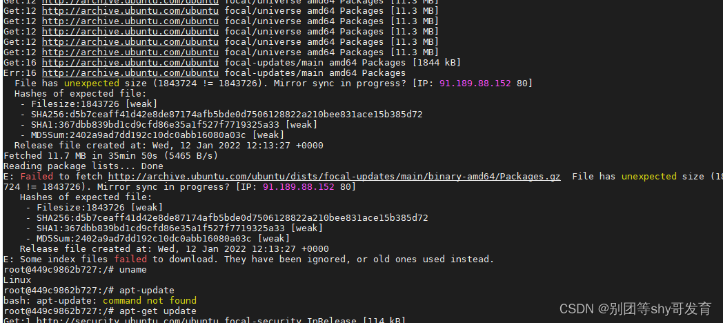 在Docker容器中安装ubuntu镜像之后,默认使用的软件源是ubuntu的官网,速度非常慢,更新软件包经常报错