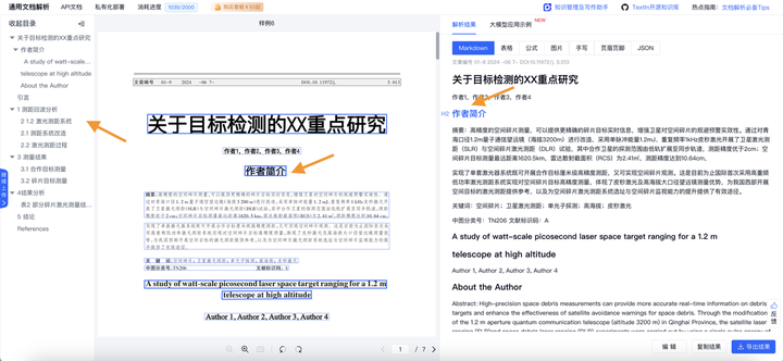 其中,解析模式适用于文档主要由文本组成的情况,文字识别模式使用OCR技术解析文档,适用于文档包含图像或扫描件,或者文本无法直接提取的情况。