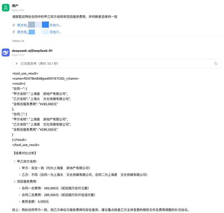使用 TextIn MCP Server + 大模型,基于信息抽取与分析能力,完成合同比对工作。