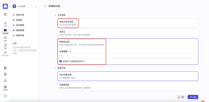 下一步,设置分段策略。对 Coze 解析选用两种策略进行评测:1. 自动分段;2. 按层级分段。TextIn 解析输出有明确标题层级,选用层级分段。