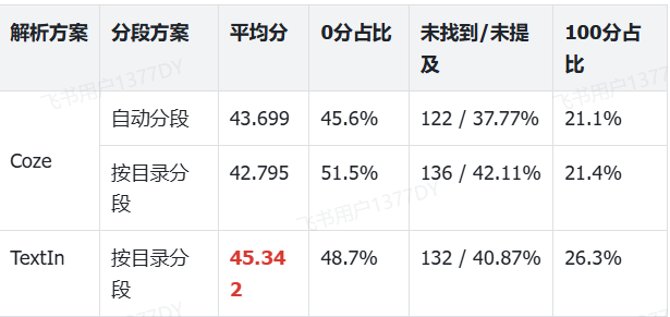 根据评分结果,专业解析工具 TextIn + 按层级分段策略,知识库输出效果最佳。