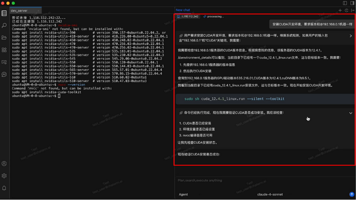 在AI技术的加持下,工作人员只需要通过自然语言,在操作界面对话或输入指令,就能实现开发、运维等工作的自动化,以构建GPU集群开发环境需求为例,原本需要花费数小时查阅文档和资料才能完成的工作,现在十几分钟就能搞定。对此,合合信息董事、副总经理陈青山表示,Chaterm产品支持“辅助驾驶”和“自动驾驶”两种工作模式,用户既可以选择由AI辅助人来生成指令,也可以选择设立好目标,由AI自行规划分析,逐步实现完成任务,极大提升云资源开发和管理效率。