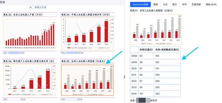 金融报表深度解析:精准处理年报、研报、ESG报告及招股书等复杂文档,完整还原全文逻辑结构、多级标题、数据表格(含跨页合并单元格)、图表与注释的关联关系,为AI金融分析系统提供结构化输入,支撑自动化的财务对比、风险指标提取及合规审查,显著提升投研与审计效率。