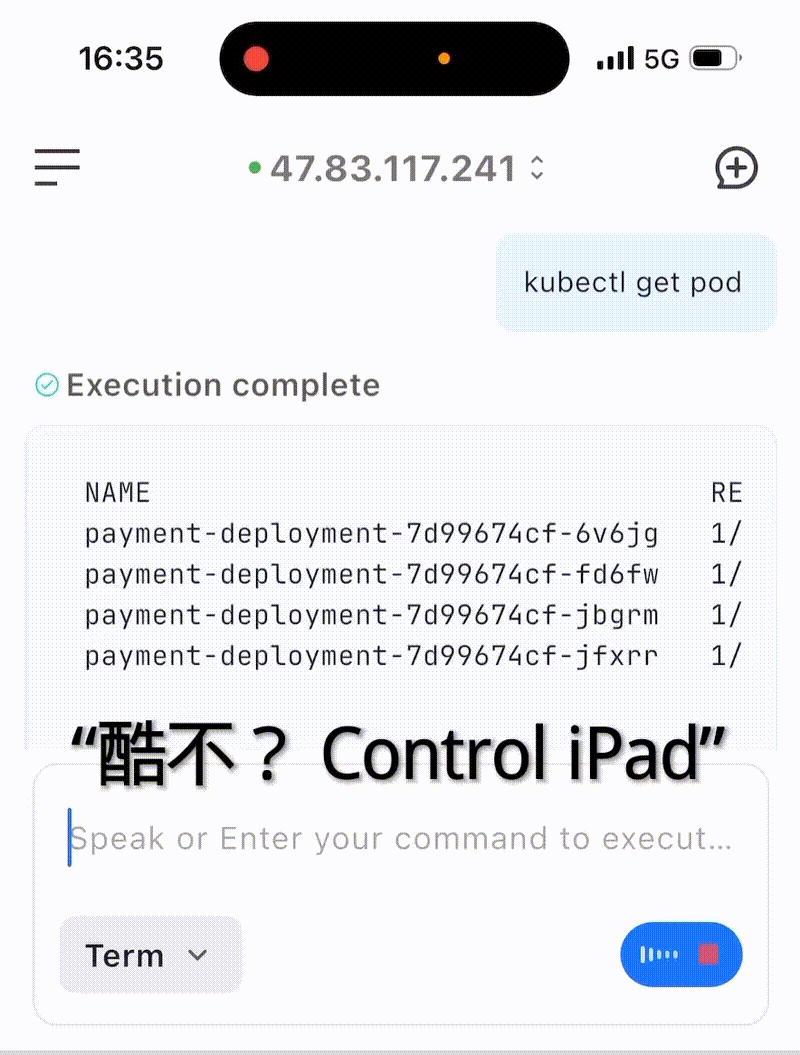 而在对话模式下,则可以用自然语言的方式直接下达指令:“帮我把 payment 扩容到 10 个副本!” ,实现移动环境下的故障应急响应。