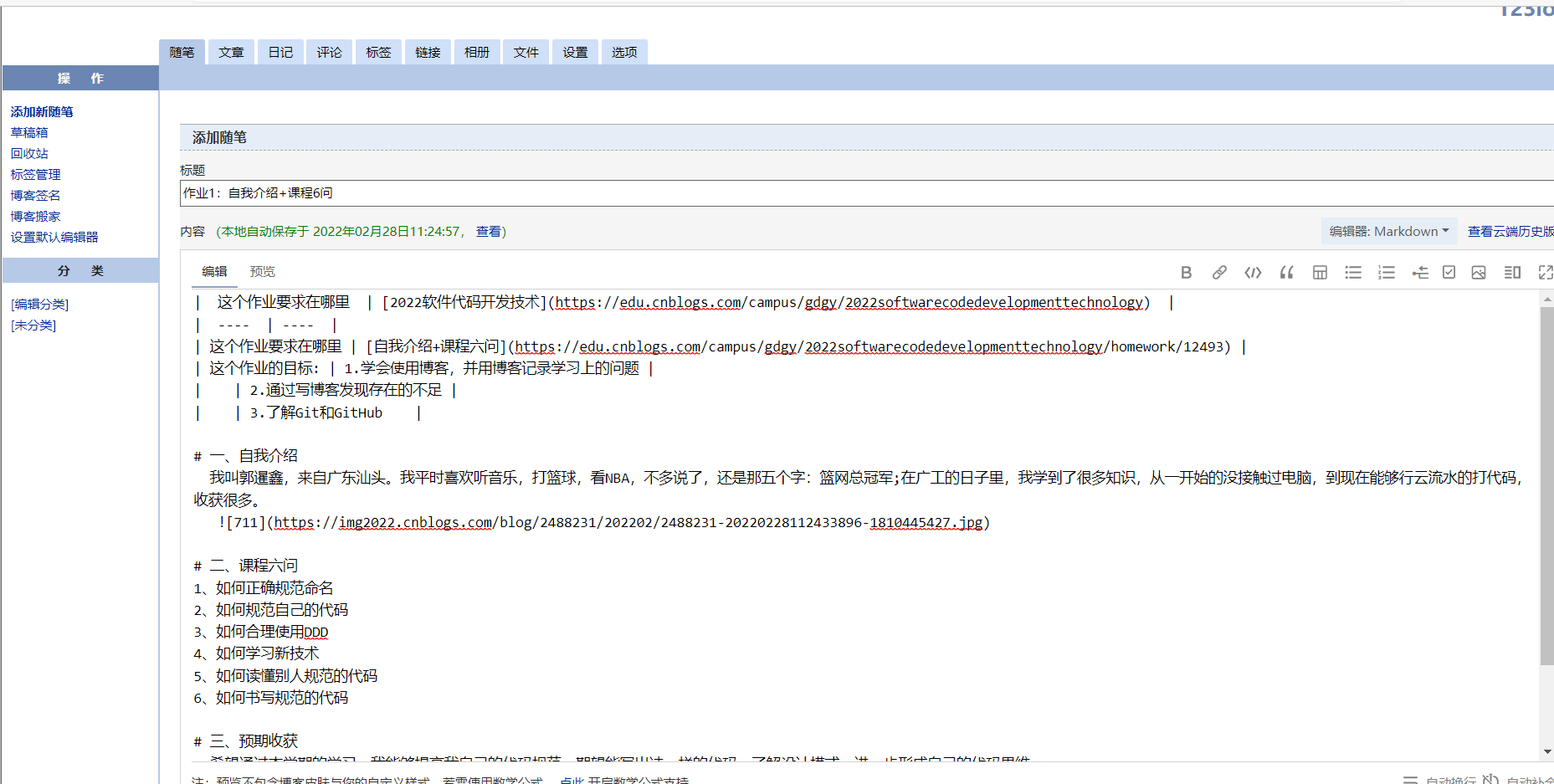 | 这个作业的目标: | 1.学会使用博客,并用博客记录学习上的问题 |