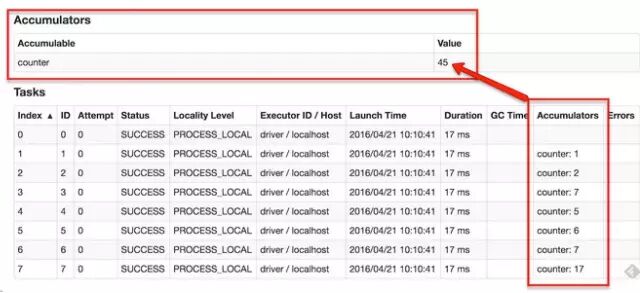 而且 spark 2.0 里可以在 web ui 里查看 Accumulator 的数据了,非常方便[注明一下,这里我没有尝试过在 2.0 之前是否可以在 web ui 里查看 Accumulator 的数据,如果有写错了请大家指出哈,谢谢]