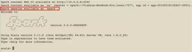 值得注意的一个点是,在 2.0 之前,启动 spark repl 时,会自动给你创建一个 sparkContext,叫做 sc,但在 2.0 之后,启动 spark repl 时会自动给你创建一个 SparkSession,叫做 spark。