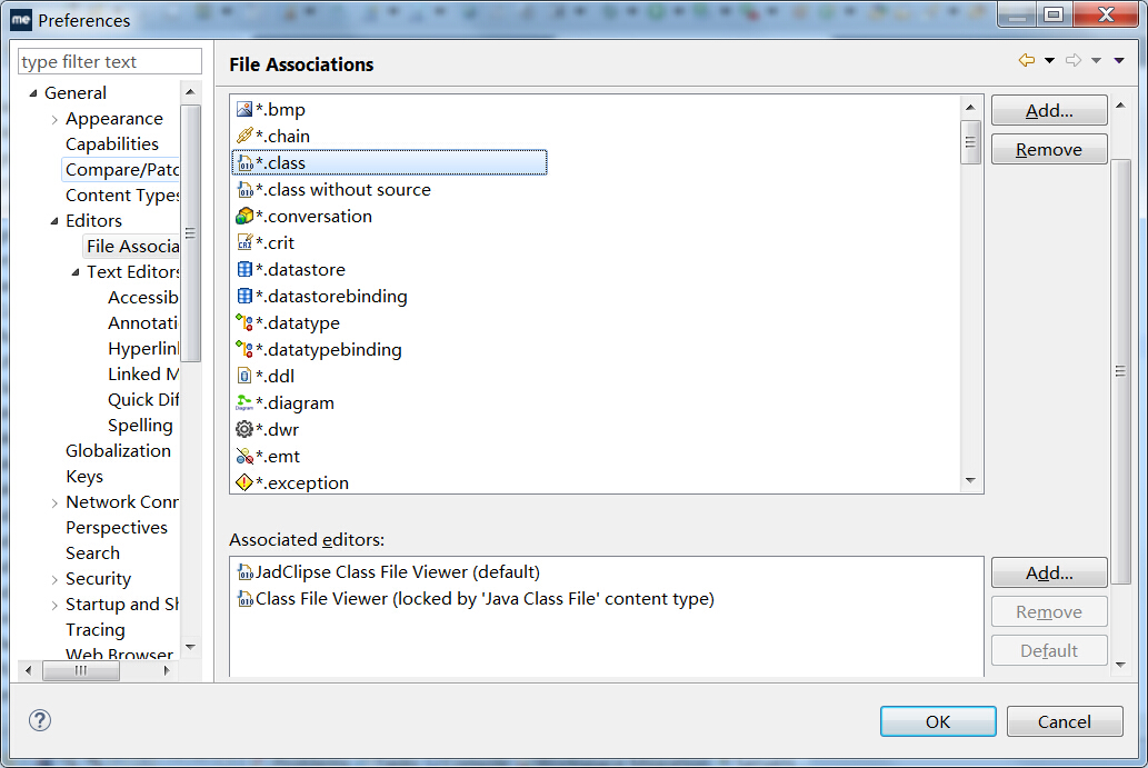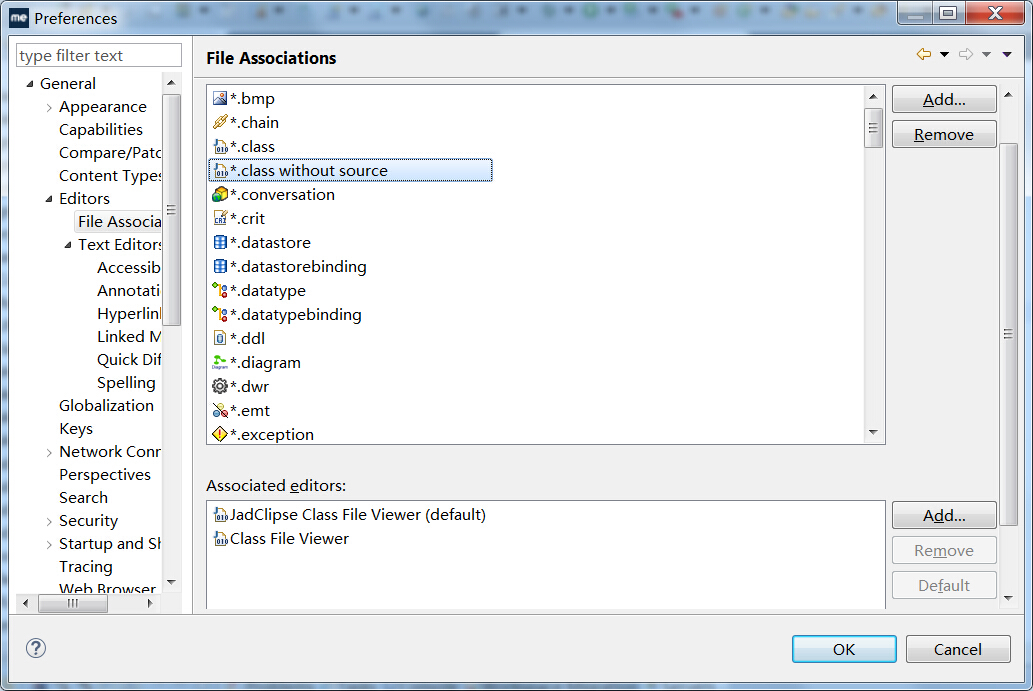 5.按照上面的设置好之后*.class的打开方式,这样还是不会起到作用的,一定要设置*.class without source的打开方式是,如下图