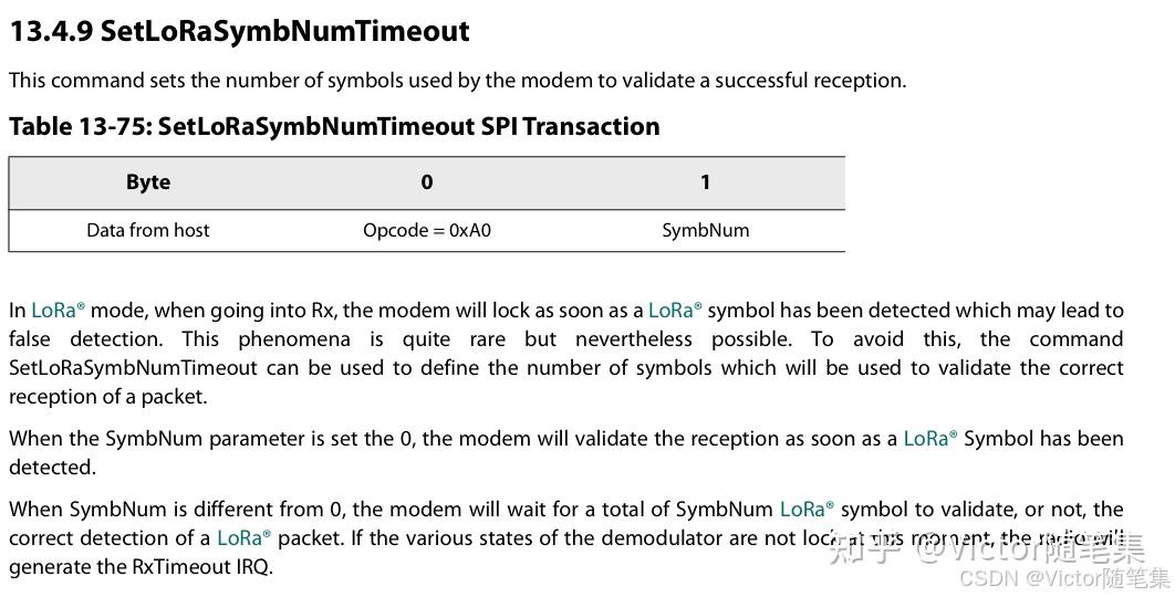 datasheet中描述寄存器SetLoRaSymbNumTimeout的作用时,有这么一句话 ... will wait for a total of SymbNum LoRa symbol to validate...。