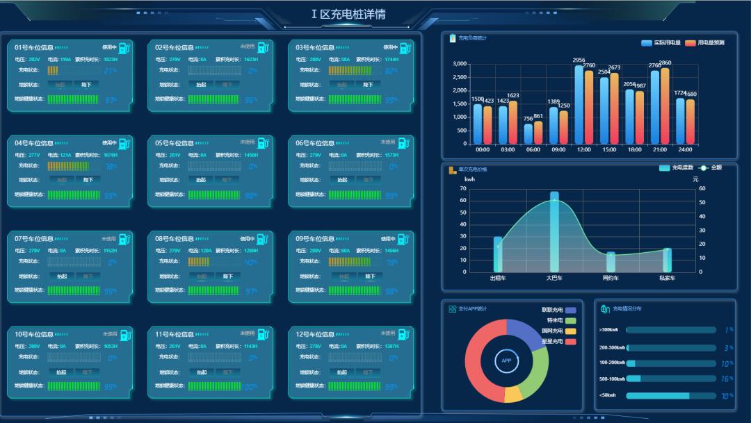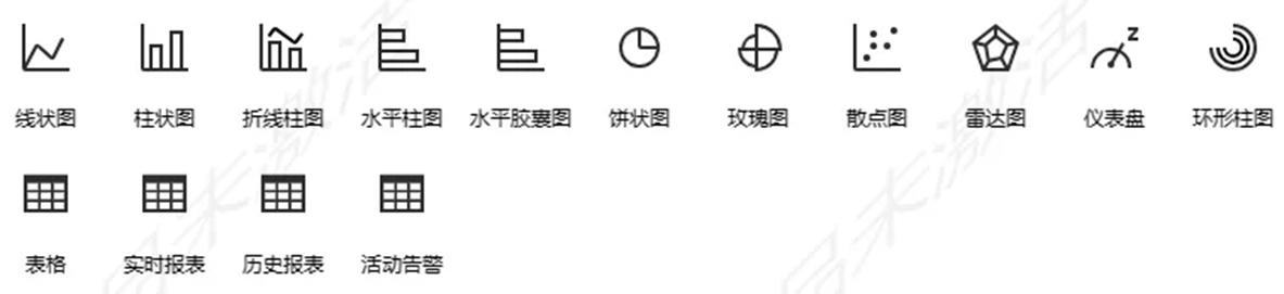 内置图表库,支持折线图、柱状图、饼图、雷达图、复合图、散点图、仪表盘等。