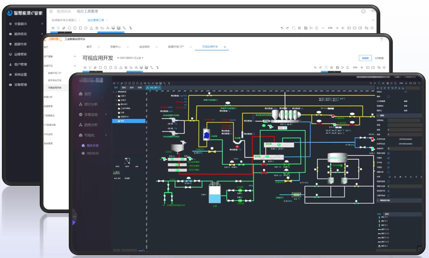组态编辑器,主要用于工业场景,可制作工艺流程图、数据看板、大屏看板、操作面板等各类图形化界面。