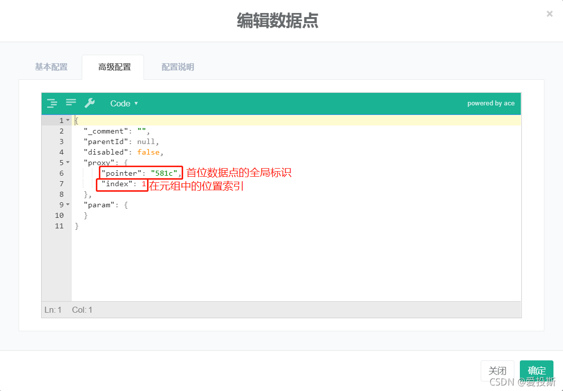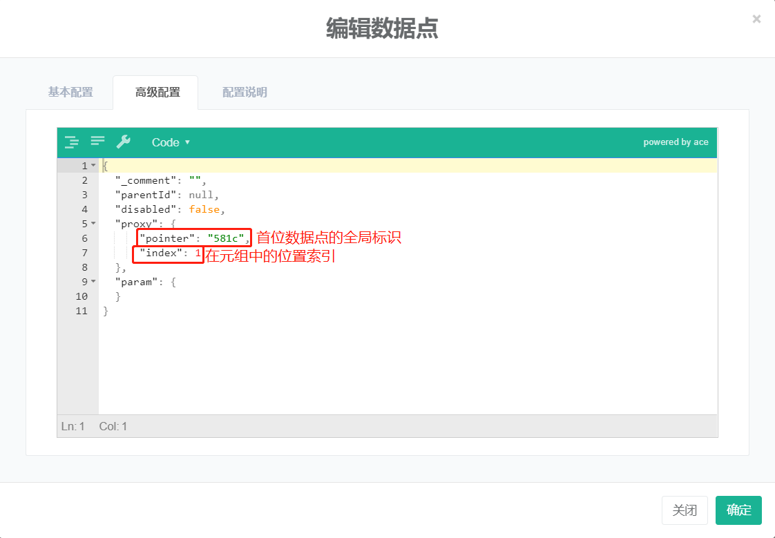 其他数据点根据首位数据点的全局标识配置pointer、index属性。