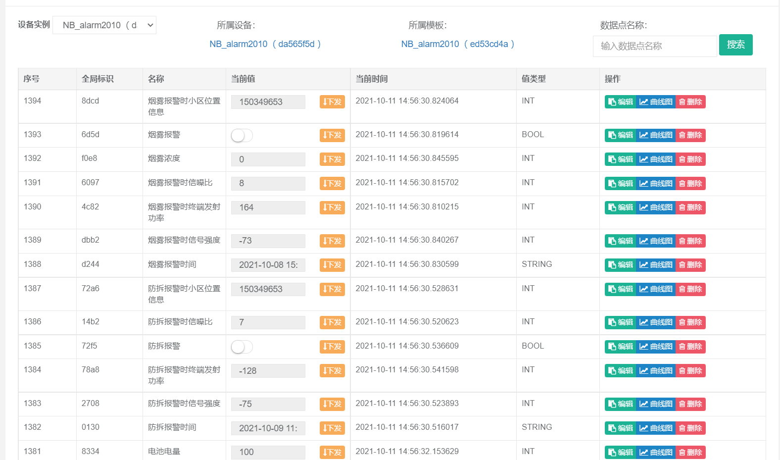 将连接至电信平台的NB光电感烟火灾探测报警器的数据拿到并上云展示