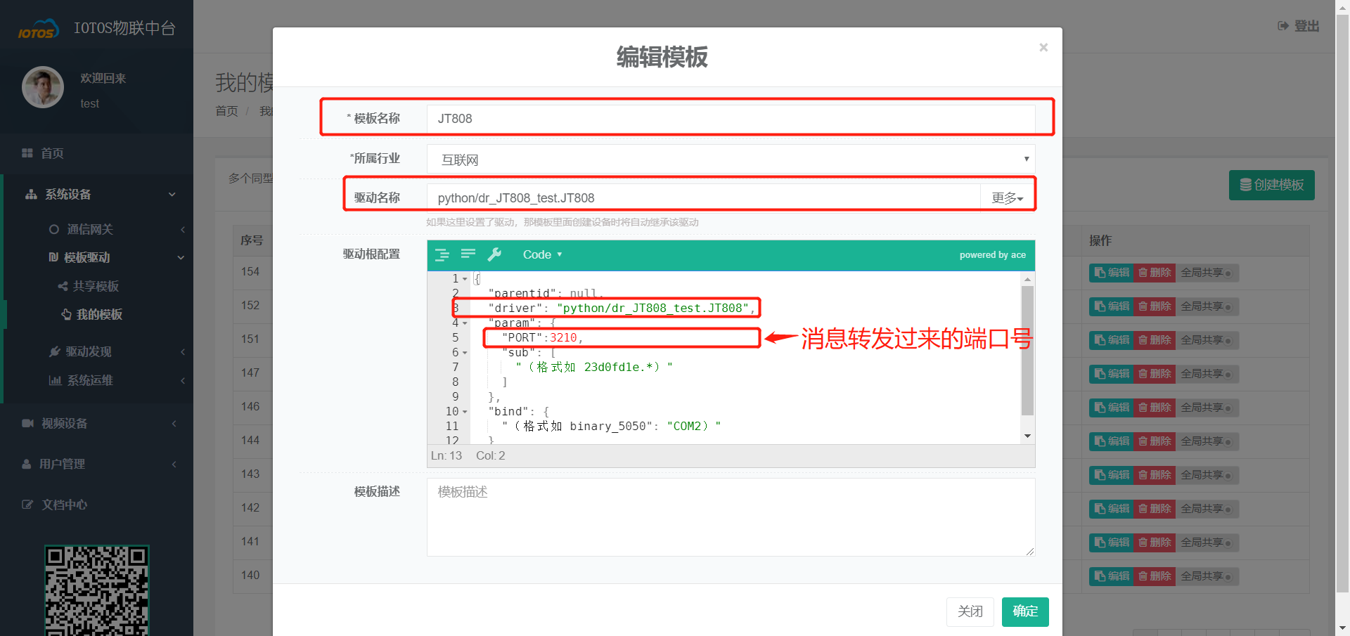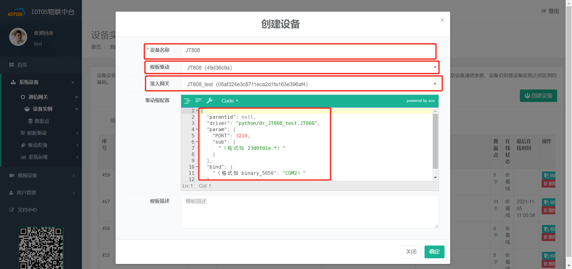 - 填写【设备名称】、选择刚刚创建的【模板驱动】和【通信网关】。