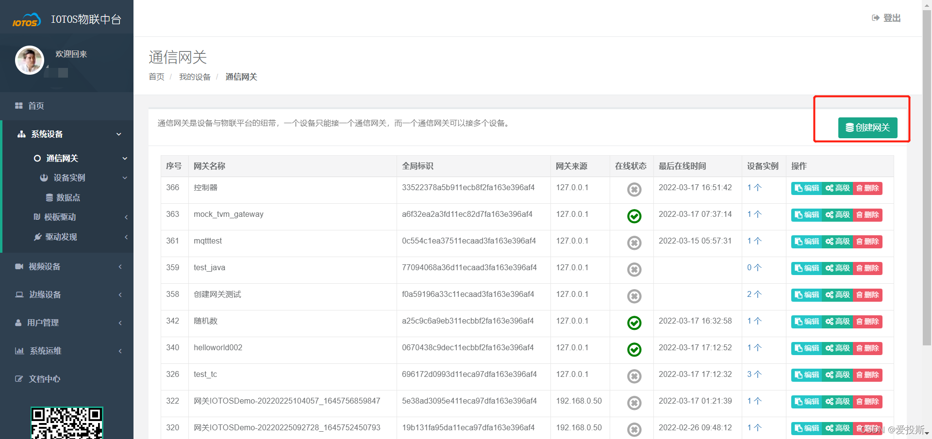首先在IOTOS中台创建网关,再打开的界面填写名称后点击确认即可创建成功