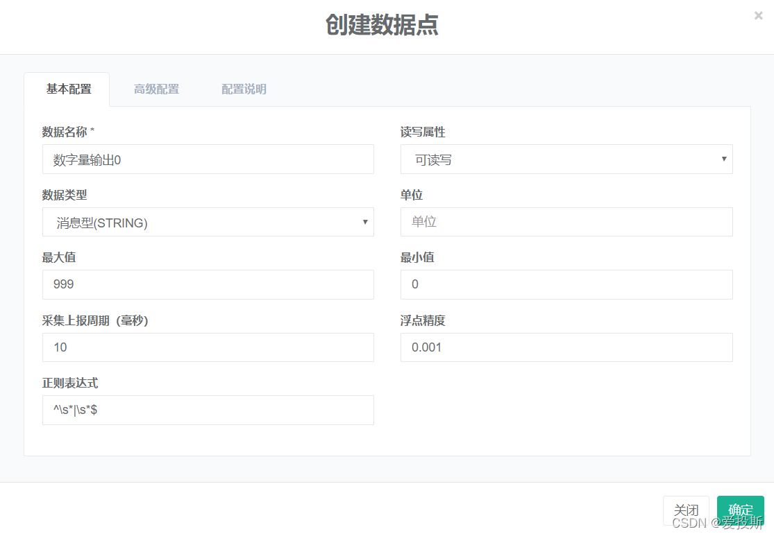 最后去创建数据点,删除自带的四个数据点然后点击创建数据点,填写名称,选择类型。