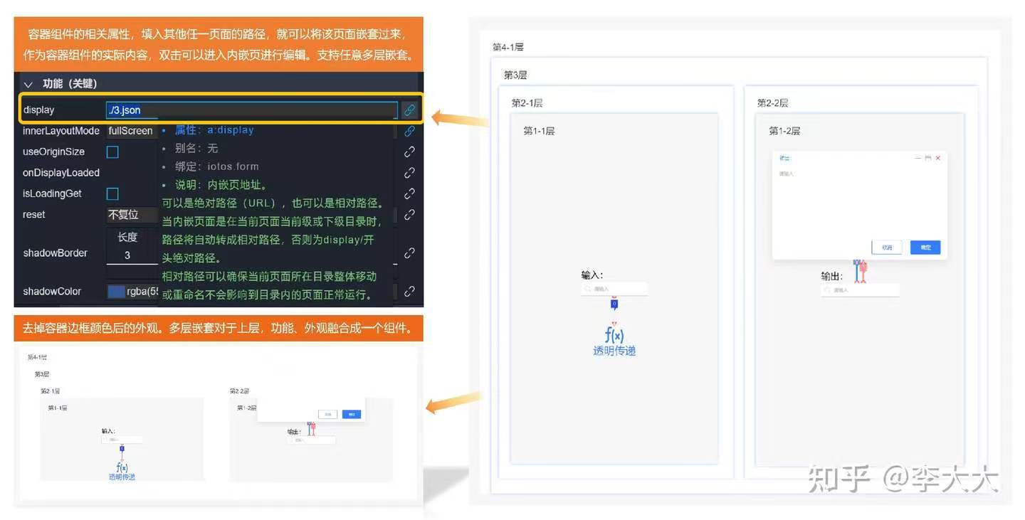 蓝图连线尤其是独创的页面嵌套和属性继承技术,好家伙相当于把vue的组件化、增量式面向对象开发,直接搬到前端拖拽工具上,无代码编程了。