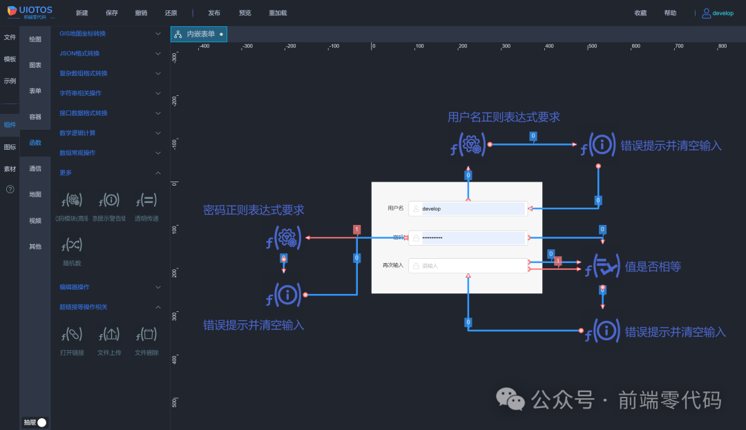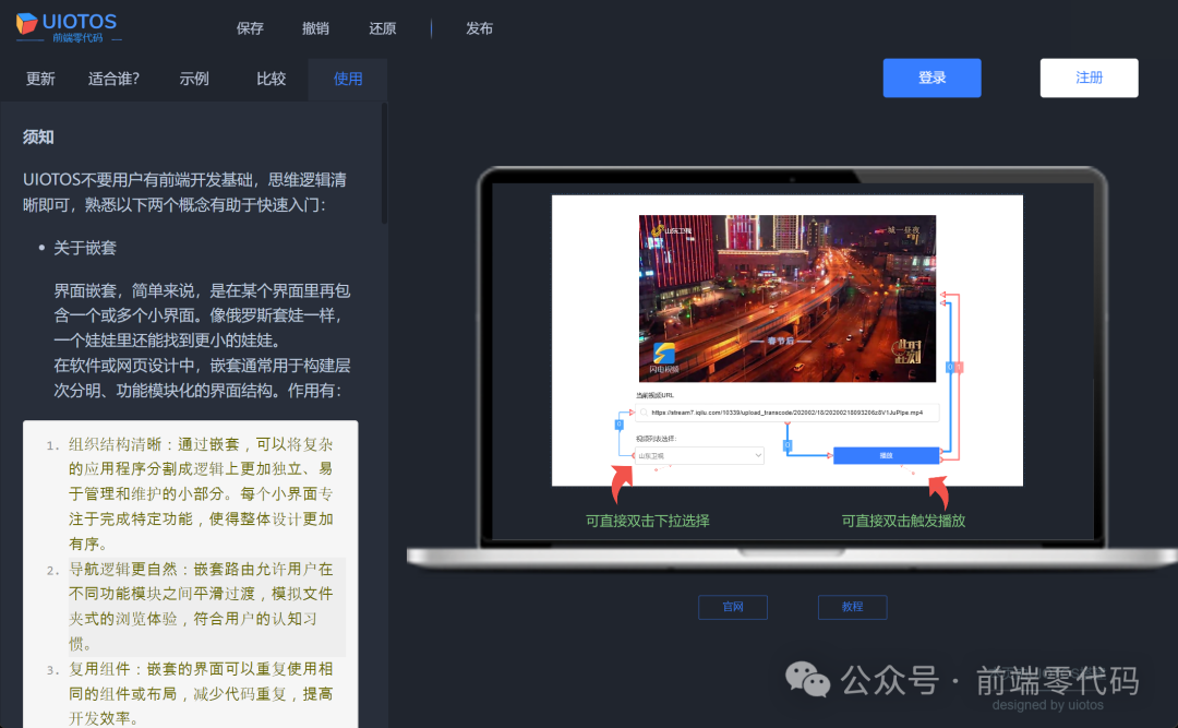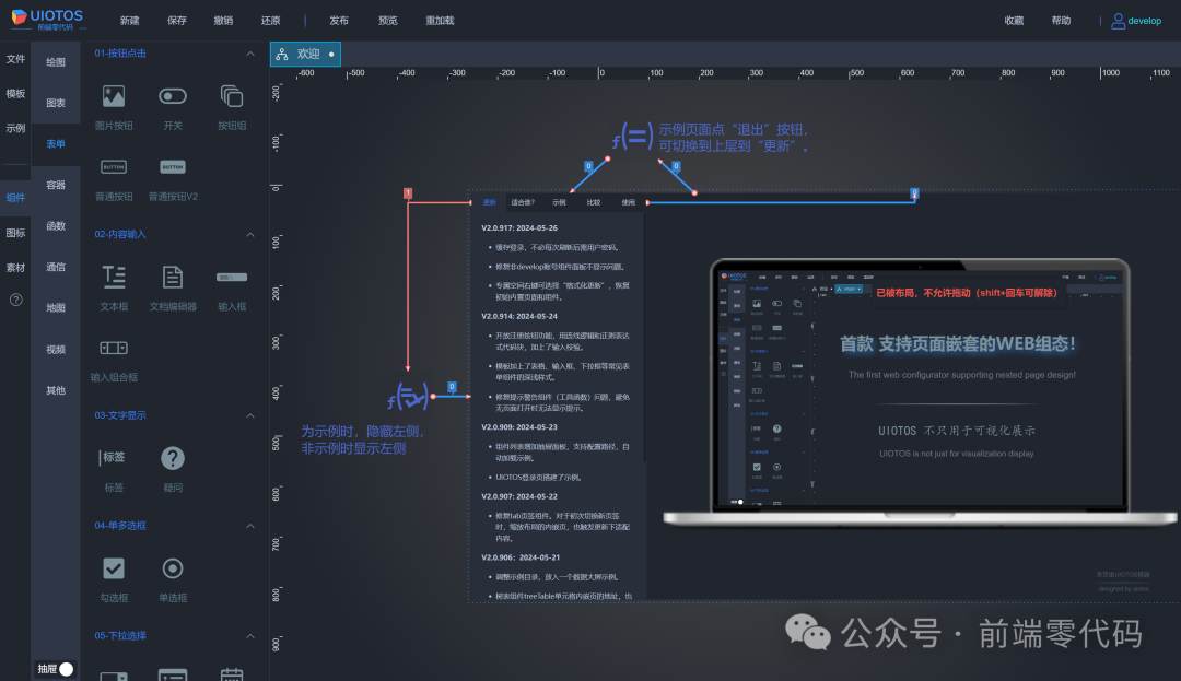因此,可以作为个人或企业开发产品、交付项目全新的一站式前端方案。相对传统开发,UIOTOS能实现原型即应用,更轻更快完成,达到与代码开发媲美的效果: