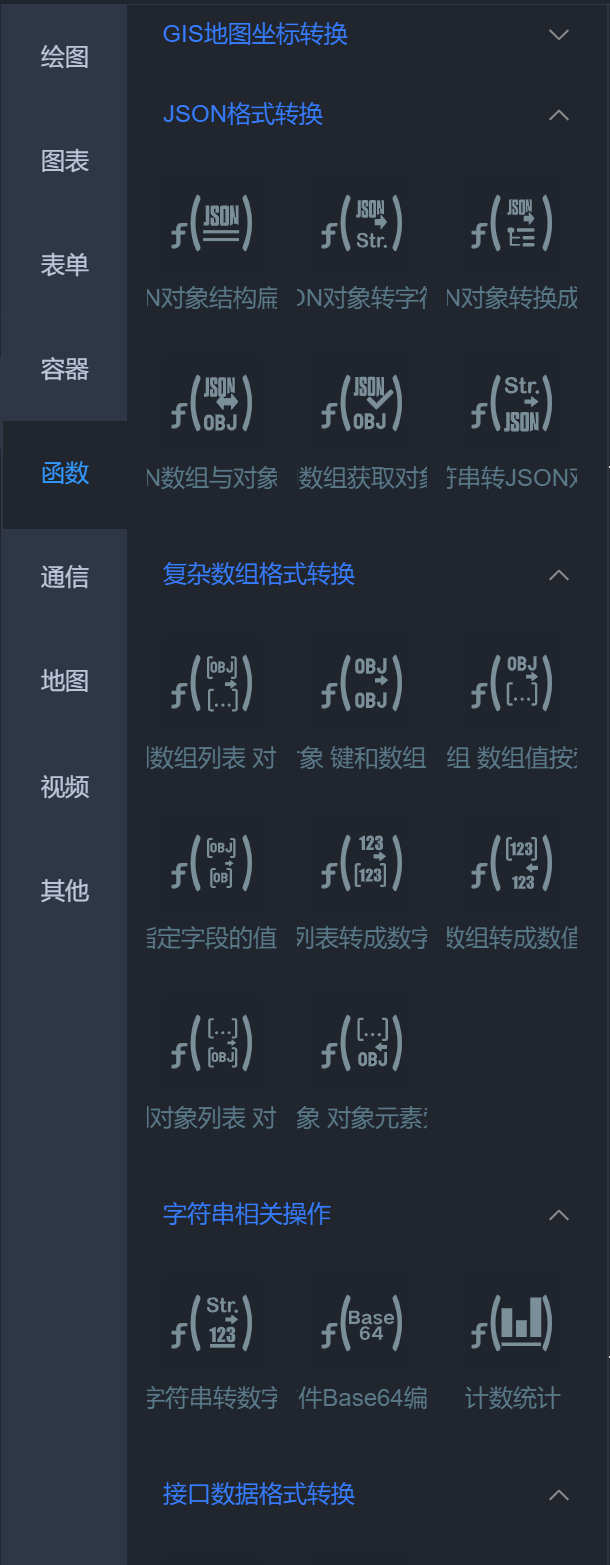 代码函数都可以封装成函数组件。实现数学计算、数据格式转换、数组对象字段提取等逻辑功能。