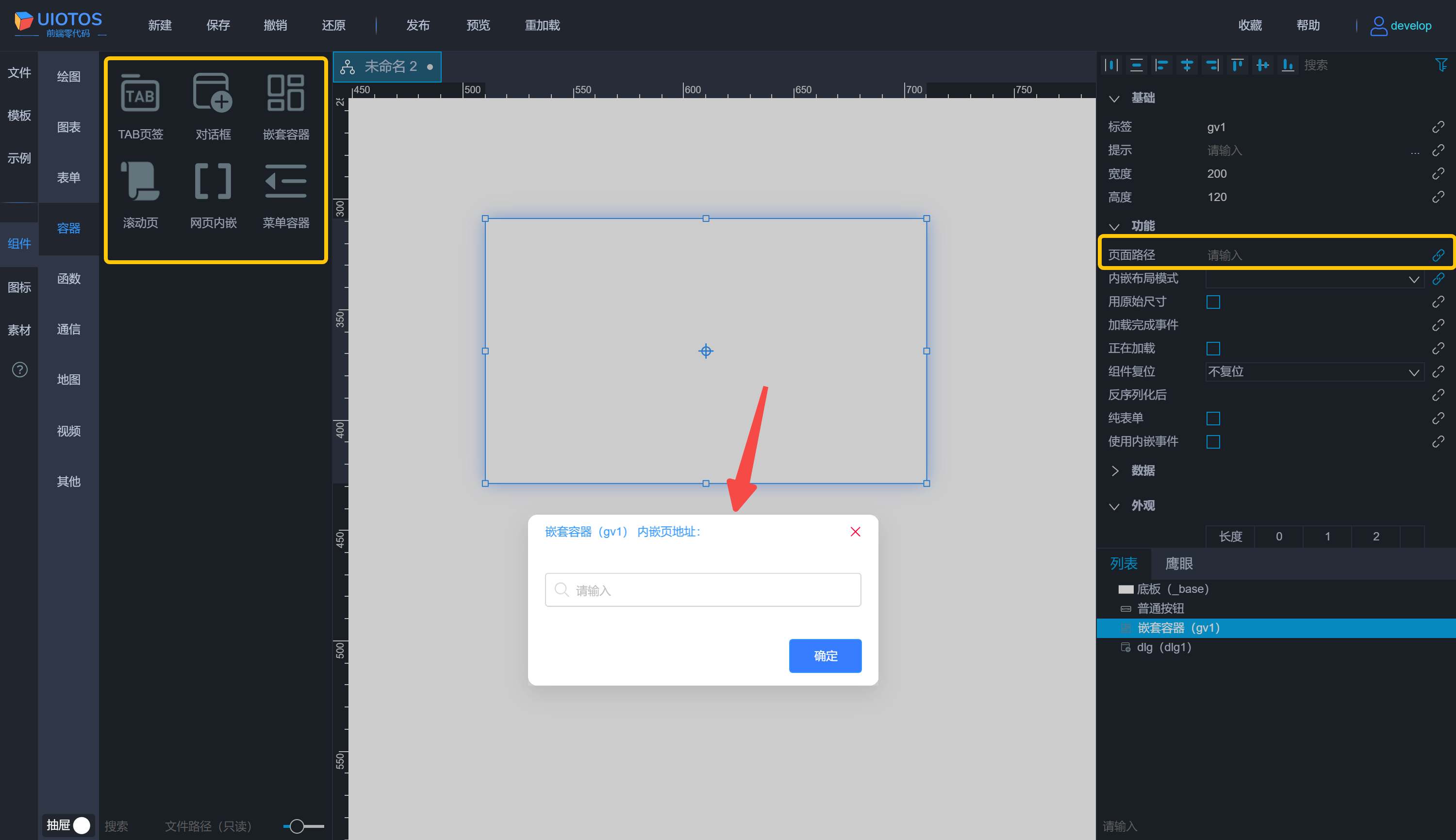 UIOTOS文档: 组件| 页面嵌套 零代码 低代码 0代码 无代码 iframe 数据大屏 web组态 前端框架 | 致敬amis codewave 乐吾乐 goview dataRoom等