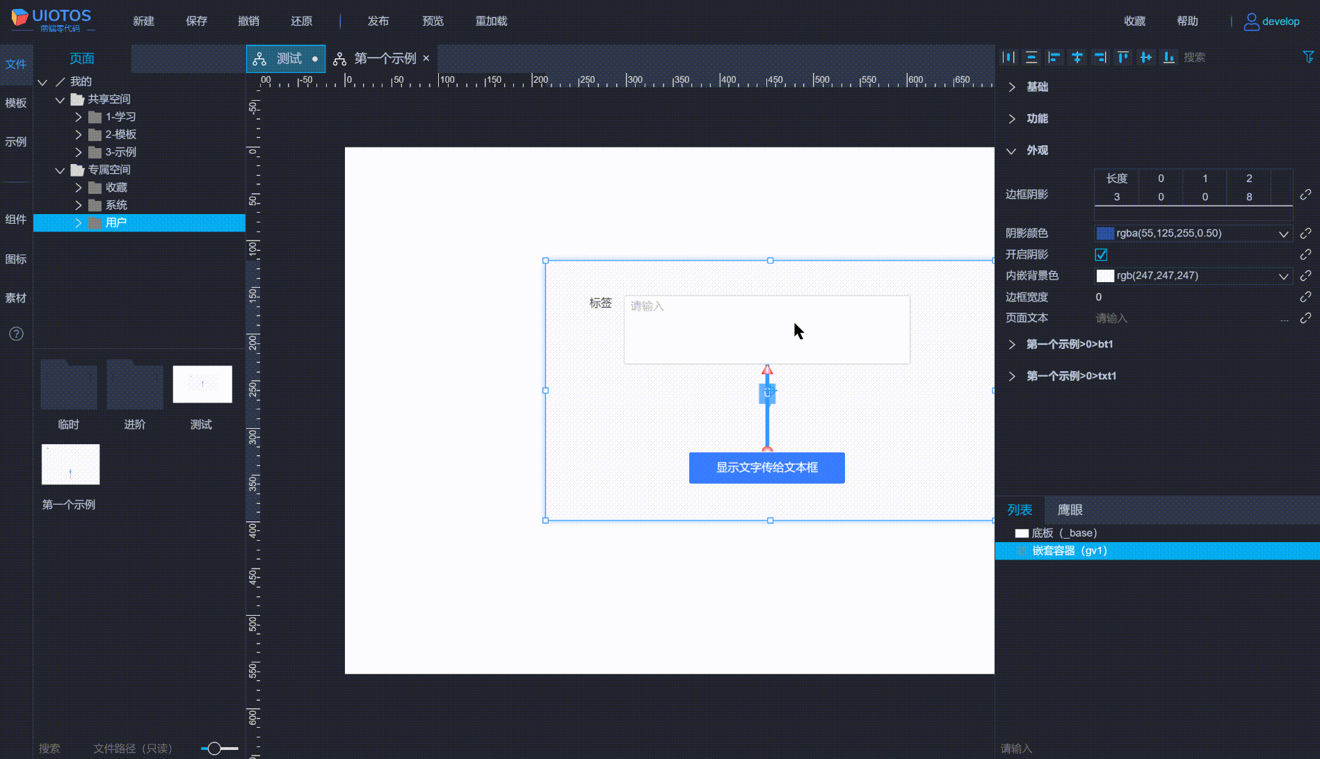 定时器、工具函数、API都是运行时无界面的功能组件,嵌套后的页面运行时也不可见。其中底板矩形,属于界面组件,因此运行时可见。