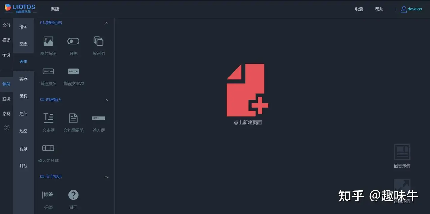 新开源的UIOTOS,这个前端零代码工具,主打IoT应用开发,一站式支持WEB中后台管理,以及上位机、组态HMI。面向的用户正好是后端、嵌入式、工控、产品、实施等人员,可以没有任何前端开发基础,通过独创的页面嵌套和连线就能做,比较新颖,程序员和非程序员都玩转。
