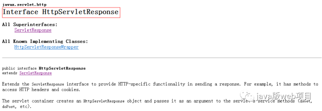 HttpServletResponse对象代表服务器的响应。这个对象中封装了向客户端发送数据、发送响应头,发送响应状态码的方法。查看HttpServletResponse的API,可以看到这些相关的方法。