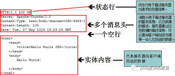 一个HTTP响应代表服务器向客户端回送的数据,它包括: 一个状态行、若干消息头、以及实体内容 。