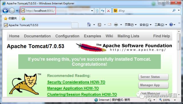访问Tomcat服务器也必须以新的访问端口去访问:http://localhost:8081/,如下图所示: