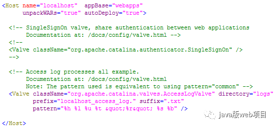 找到server.xml文件的host元素,如下图所示: